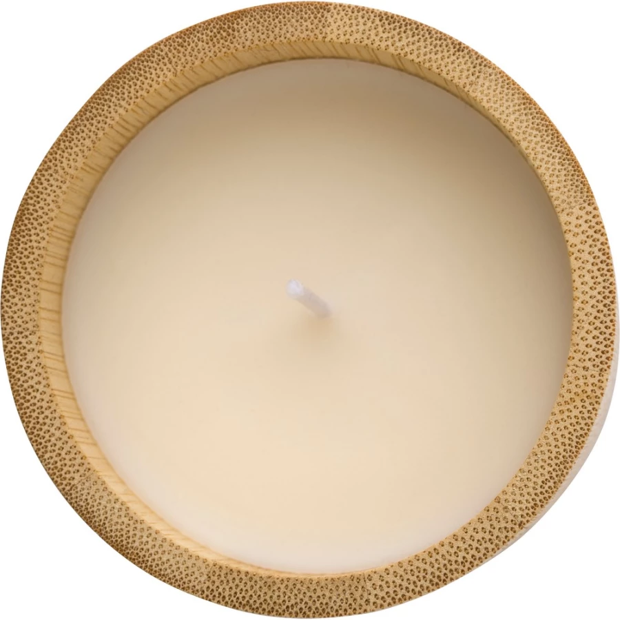 Kerze im Kerzenhalter aus Bambus, enthält überwiegend pflanzliches Wachs (Carnaubawachs), Brenndauer ca. 30 Std.
