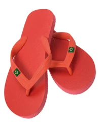 Pair of flip-flops with soles in resistant EVA and PVC straps in matching color with the Brazilian flag. In a wide range of bright tones and available in sizes 36-38, 42-44.