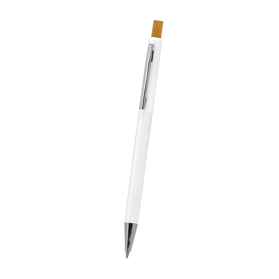 Długopis, z bambusowym przyciskiem, wkład w niebieskim kolorze, produkt wykonany z ABS i bambusa