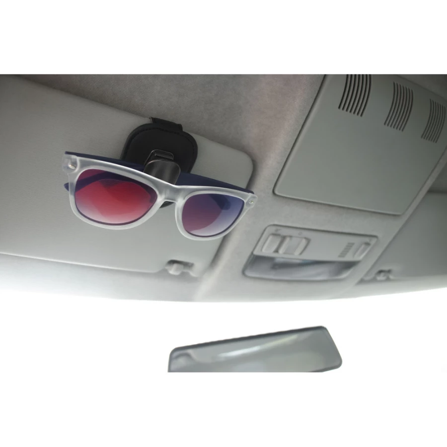 Klips na okulary Exclusive Collection, nadaje się do zawieszenia w samochodzie, ułatwia przechowywanie oraz korzystanie z okularów podczas jazdy, produkt wykonany z PU i metalu