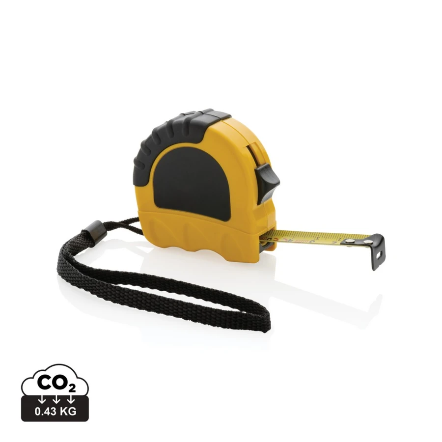 Miara 3 m, taśma o szerokości 16 mm z haczykiem i magnesami, przycisk blokady, wykonana z ABS pochodzącego z recyklingu z certyfikatem RCS (Recycled Claim Standard) który gwarantuje, że wykorzystane materiały pochodzą z recyklingu, całkowita zawartość materiału z recyklingu obliczona w oparciu o wagę całkowitą przedmiotu: 21%, uchwyt z TPR, w pudełku z papieru kraftowego z certyfikatem FSC® mix (Forest Stewardship Council), ślad węglowy produktu: 0,46 kg CO2 ...