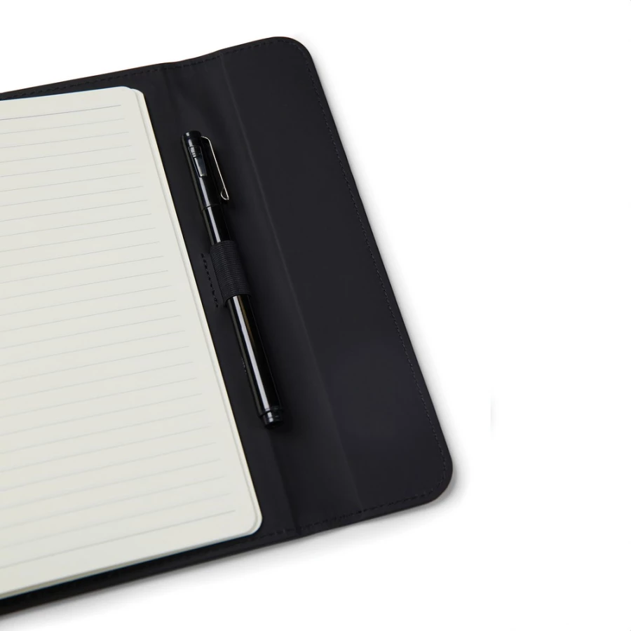 Notatnik A5 (80 kartek w linie o gramaturze 70 g/m2), okładka wykonana z PU z recyklingu, kartki z papieru makulaturowego
