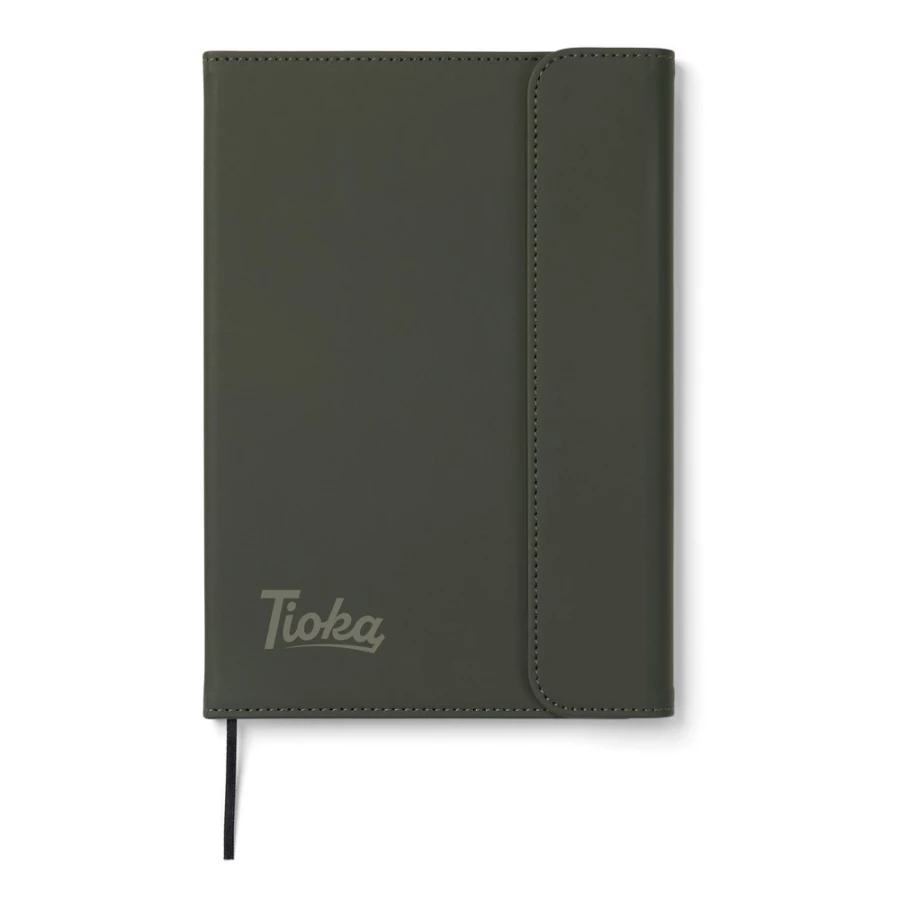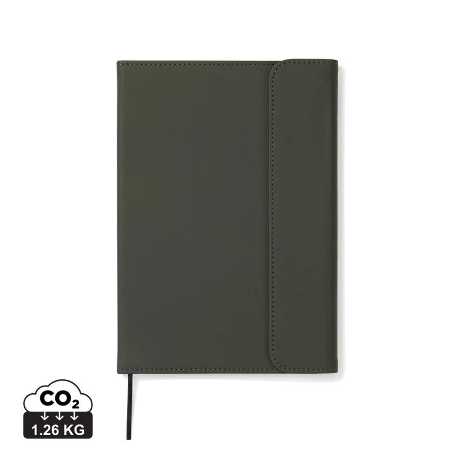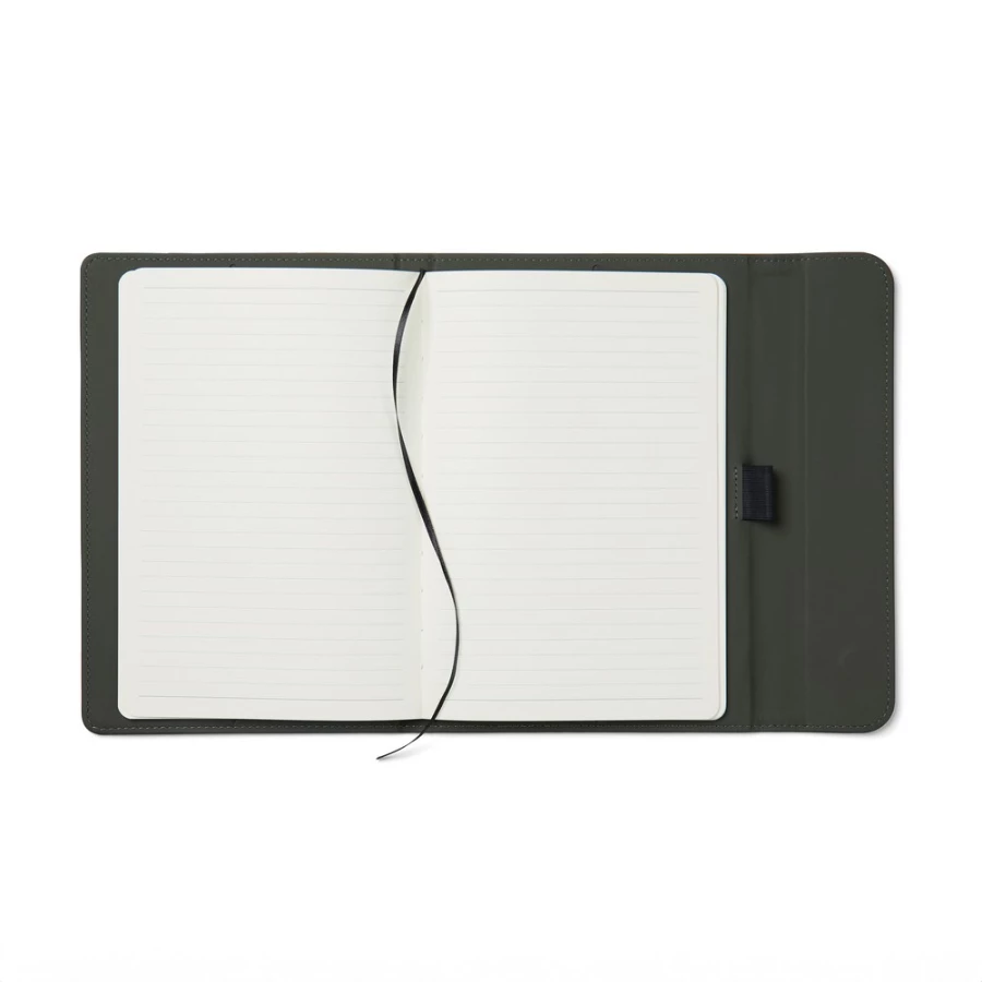 Notatnik A5 (80 kartek w linie o gramaturze 70 g/m2), okładka wykonana z PU z recyklingu, kartki z papieru makulaturowego