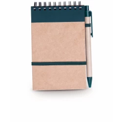 Notatnik (ok. A6, 70 kartek w linie) z długopisem, elastyczna opaska do zamykania, twarda okładka, spiralne bindowanie zwiń