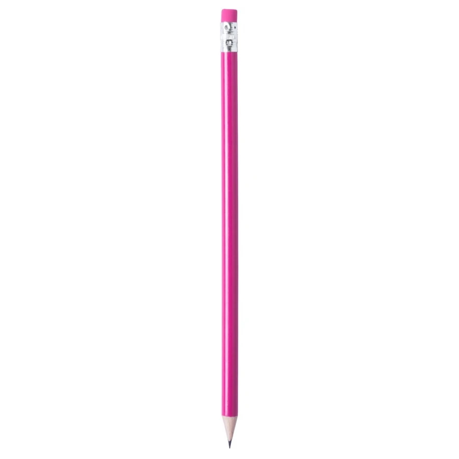 Ołówek z błyszczącym wykończeniem i dopasowaną kolorystycznie gumką, posiada naostrzoną końcówkę, produkt wykonany z drewna