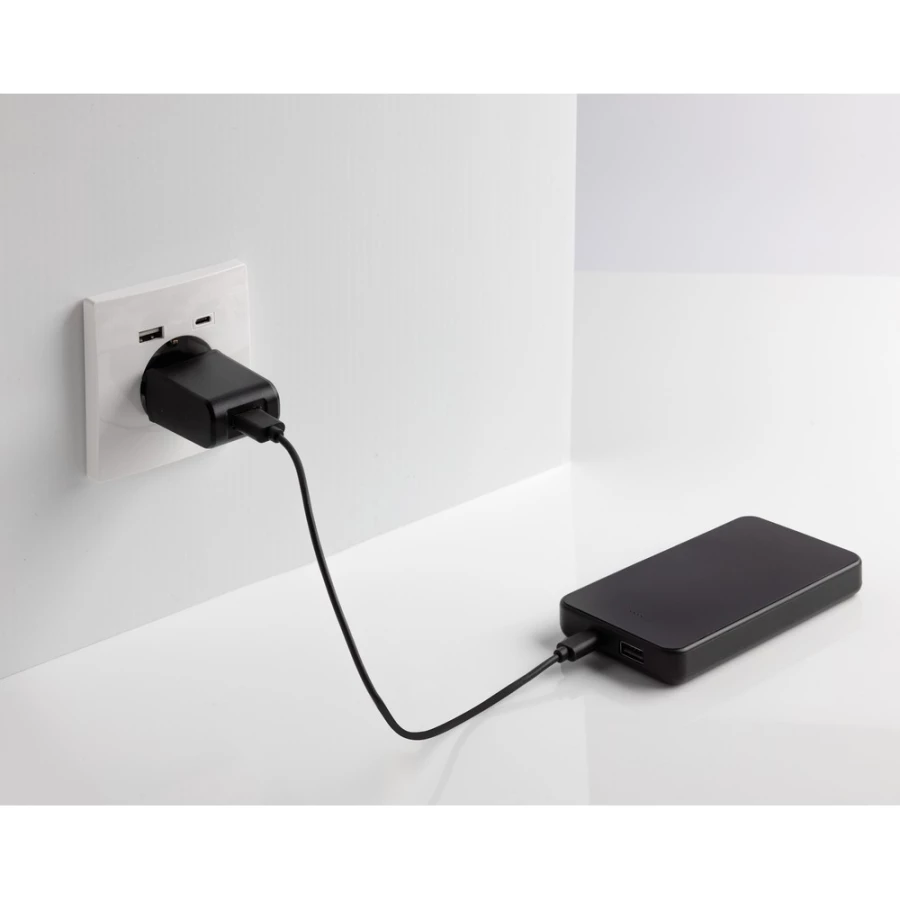 Power bank 10000 mAh z portem wejścia/wyjścia USB typu C i dodatkowym portem USB typu A, obudowa wykonana jest z tworzywa ABS pochodzącego z recyklingu z certyfikatem RCS. RCS (Recycled Claim Standard) to standard weryfikacji zawartości surowców wtórnych w produkcie w całym łańcuchu dostaw, wskaźniki zasilania wskazują pozostały poziom energii, w zestawie kabel ładujący TPE z recyklingu z certyfikatem RCS, zapakowane w opakowanie FSC® mix ...
