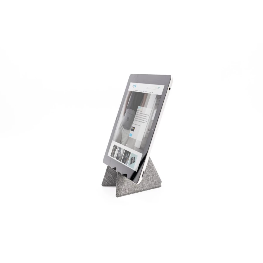 Stojak na telefon BrandCharger Ascend Mini, magnetyczne zamknięcie ułatwiające przenoszenie, mieści smartfony i tablety o przekątnej do 13", zawiera organizer na kable pomagający zachować porządek, produkt wykonany z RPET, poliestru i kartonu